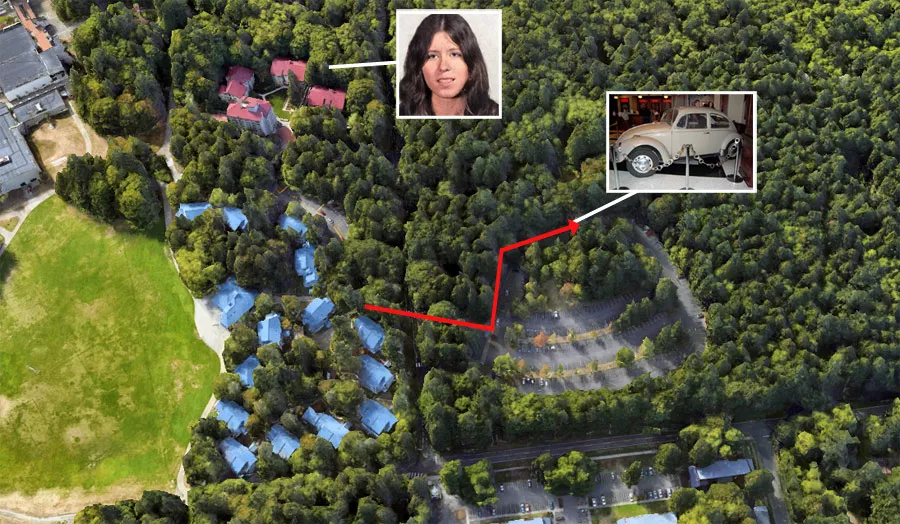 The most widely believed theory was that Bundy grabbed Donna in a Georgann Hawkins-esque grab as she was on her way to the dance class that evening in March 1974: the route that she most likely took from her dormitory to the folk dancing class was only 350 yards away, and should have only been about a two minute walk, and because of the short distance involved it has been theorized that Ted grabbed Manson almost immediately after she left. One possible scenario could be that he may have approached her (perhaps while using crutches or an arm sling) in a nearby parking lot (lot F) and asked her to assist him with carrying something to his car. Another idea is that Bundy parked his car on Hidden Springs Drive, which is close to the c-dormitory and connects the area around the library with Driftwood Road, and is incredibly close to the route that Donna would have walked to get to the folk dancing class. But because traffic on campus was unusually high that evening because of three different events taking place, it stands to reason that both areas would have been pretty busy at the time, and a careful Bundy wouldn’t have taken the chance of getting caught. But at the same time… he was a known risk taker, especially while under the influence of alcohol and marijuana, so we can’t completely rule it out (and keep in mind that it worked out for him).