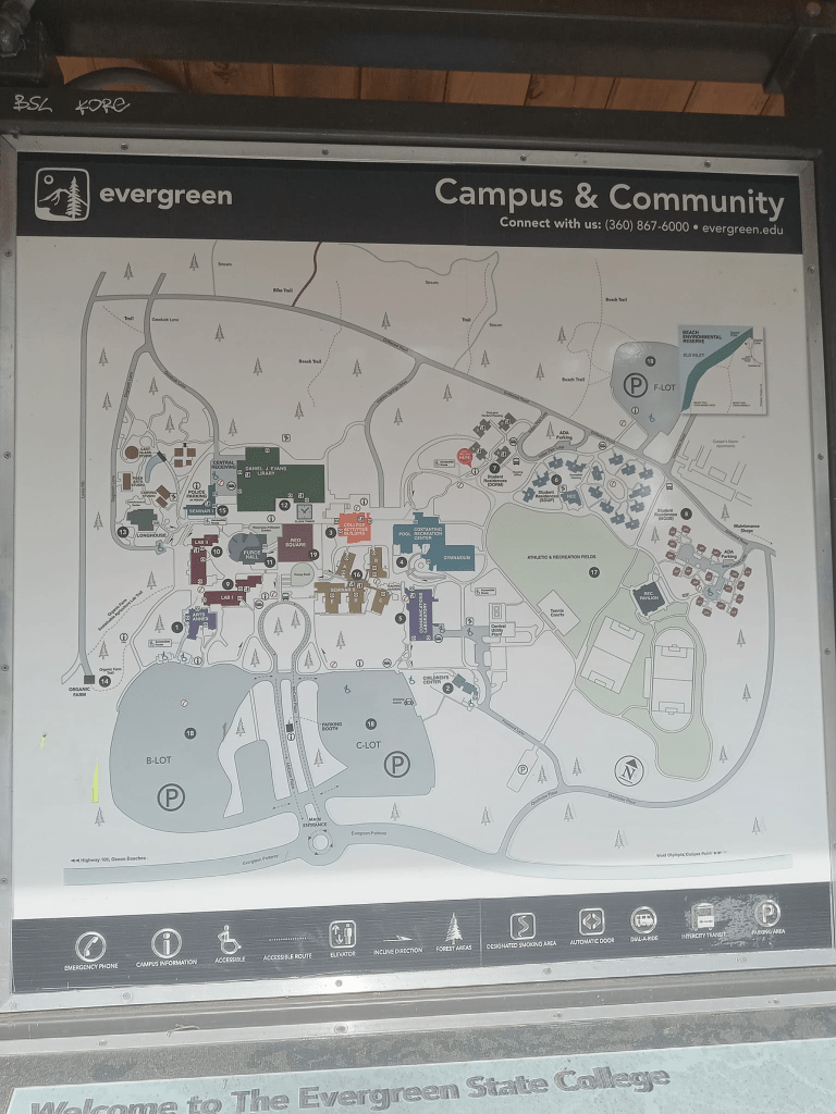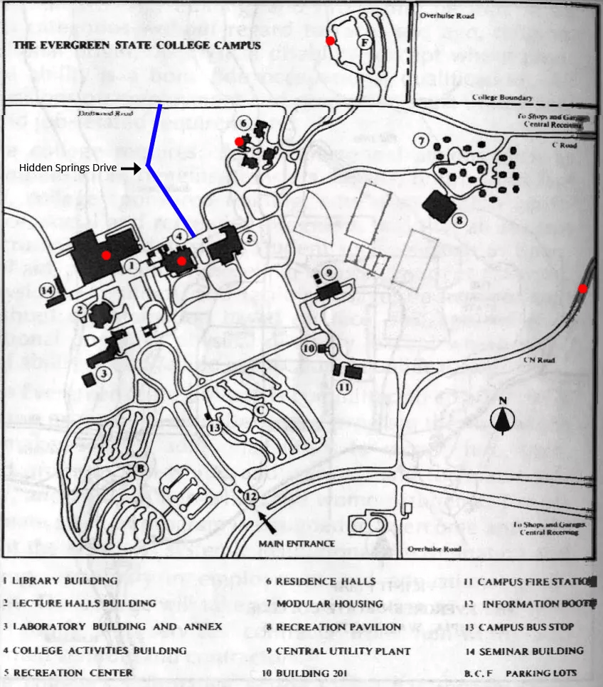 The campus at Evergreen State College is less than ten miles east of Olympia and was built in an isolated, remote spot surrounded by a dense forest of evergreen trees. A small, liberal arts school, in the fall of 1974 its enrollment wasn’t even at 3,000, and some of the more conservative Washington state residents complained about its high per-student cost of operation and ‘hippie-like atmosphere.’ One lawmaker even complained during a speech about how the students’ dogs were peeing on the expensive carpets in the schools library (which was ironically named the Daniel J. Evans Library, after the state governor that Bundy worked for).