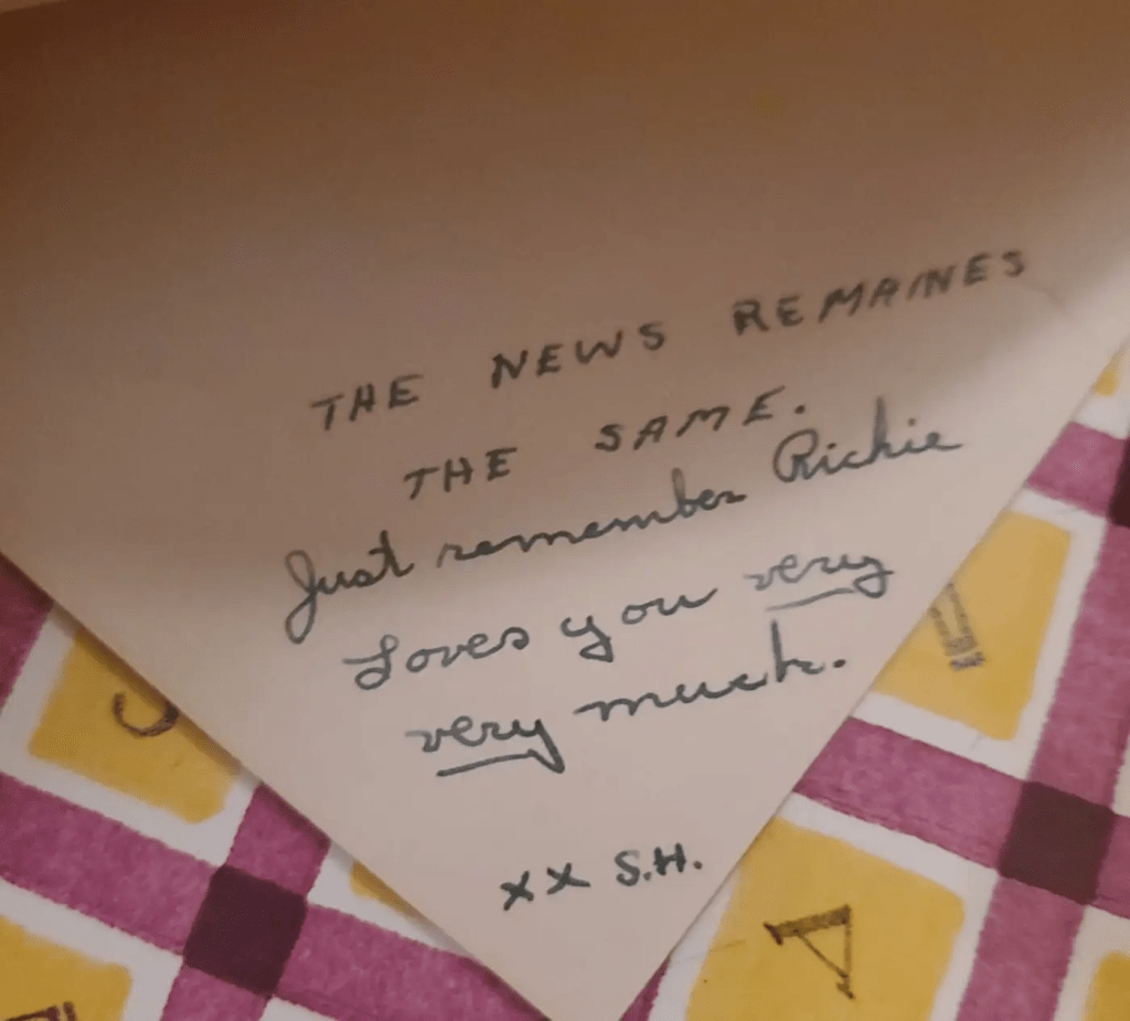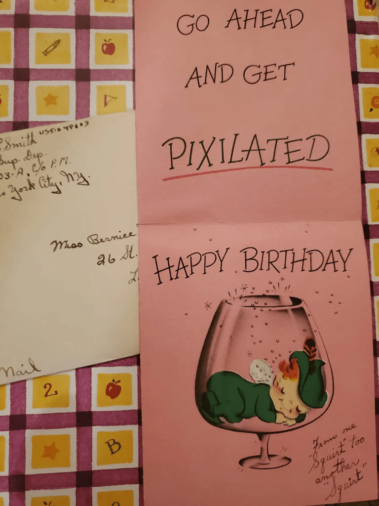 This will be the last post about my family, I promise. I’m almost done with my piece on Brenda Ball. I’m incredibly behind on my ASL class and I’m dreading checking my email (I’m putting it off until tomorrow morning). Anyways, these are some really neat old love letters my Grandfather sent to my Gram during the Korean War. They were a little older when they got married in 1954 (she was 32 AND two years older than him!), and I’ve always admired that my Gram waited for the right person. She didn’t marry the first attractive guy who looked her way. She’d always tell me not to commit to just one fellow and to date around… and she did, she’d date a few guys at once and not think anything of it. My Grandma had this classic, ol’ timey beauty to her that you don’t see often anymore, and my Grandfather looked like he had a really great sense of humor (he died when my Mom was 11). When I asked my Mom to tell me about her Dad, she said she remembers ‘a lot of giggling in the other room before bed.’ He loved to make her laugh. After he passed away she never had any interest in remarrying, or even dating. My Mom said Grandpa was her one great love and he was it. She wasn’t interested in anyone else. Whats strange is I feel the same way about my husband. All I ever wanted was to get married, to have what my parents had. I thought I had it a few times before him but (thankfully) was wrong. I think he’s the person God made for me, and if anything ever happens to him I’d be done. I hope I never have to worry about that.