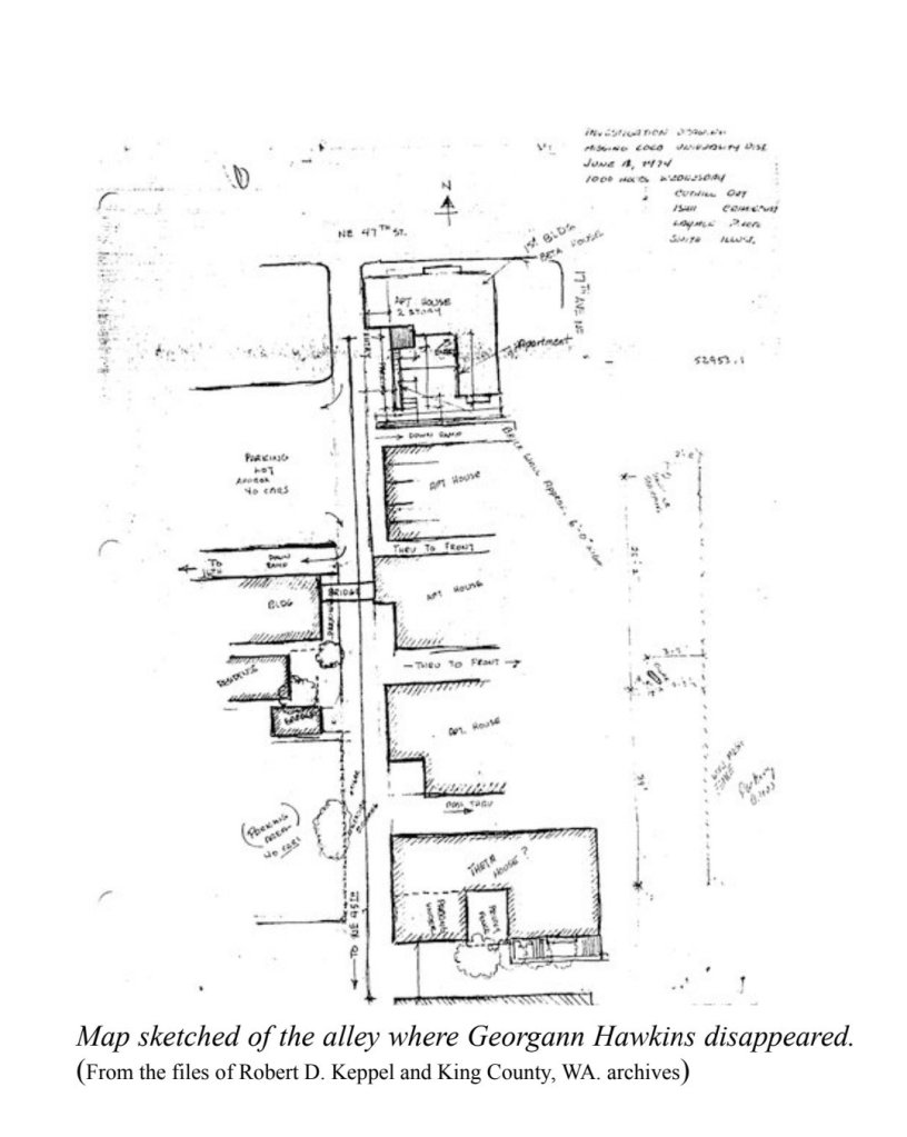 The severe PTSD and ‘fragmented memory’ Ms. Survivor claims to suffer from is due to the severe head trauma she experienced from multiple head fractures inflicted on her by Bundy and previous assailants. In her memoir she claims the only reason Bundy even abducted Georgann was because she was trying to stop him from pursuing his frequent attacks, assaults, and abductions on her. Survivor claimed that Hawkins walked through the pathway by the Theta house when she was talking to Ted: he was mad at her for avoiding him (she said it had been going on for a few weeks). During her freshman year, Hawkins joined the sorority Kappa Alpha Theta and lived in their house on campus, where Sara was a sister and resident at the Kappa Kappa Gamma house. Ted told Survivor that he ‘wanted her to carry the briefcase and go out for a drive with him to talk but Manfred (who I’m assuming is a dog) was pacing at the door to go in and I was not supposed to have him in the annex and he could get in trouble so I told him that I would go later to talk. George volunteered to help Ted, she was my friend, we were close and had been in Daffodil and she was like another little sister to me (similar to Anne) and I think she could tell that there was tension between us and she was trying to help me. They walked me to the annex door, which was only a short distance with George having to stop and wait for Ted several times as he kept trying to get me to go with him. I went in and left the light off to go to bed and put my pajamas on and shortly thereafter I heart the noise outside my window. It sounded like a body falling. I kept telling myself I was imagining things. I was also alarmed because the lot was big and rarely did anyone park outside of my window at night unless it was Ted. I was alarmed as I had not seen the lights of his car and if he was indeed parked outside of my window then he had broken his routine and not put his lights on and that frightened me. I snuck to the window and peeked out the side, lower edge of it. He did not see me. All I saw was him, standing by his VW, with the door open staring into my window. I never saw George, but just the actions and the sound terrified me. I tried to call the police as I stated, but I had nothing to go on but a noise.’ Additionally, per the ‘Citizens Complaint: SLR June 2017,’ on the evening that Georgann Hawkins was abducted Survivor said that she: ‘heard Bundy but I did not see him, knock Georgann out and I peeked out the window to see what the sound was as I was terrified of him (related to what happened with me, I did not realize at the time all else he was doing).’ … ‘I saw him drive away that night but did not know he had George. I also wasn’t processing anything very well at that time. Repeated captivity with rape, head trauma, and unrecognized and untreated rape syndrome from high school was taking a serious toll on me.’