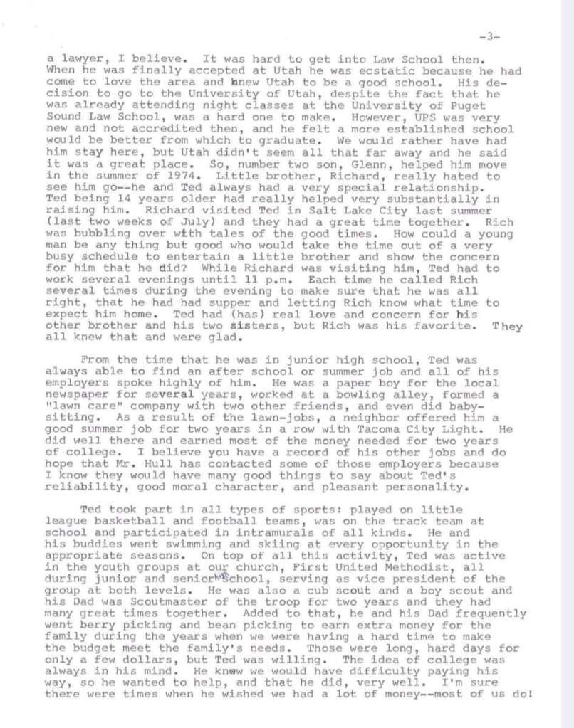 On March 10, 1976, Louise Bundy penned an emotional plea to Judge Stewart Hanson on Ted’s behalf.