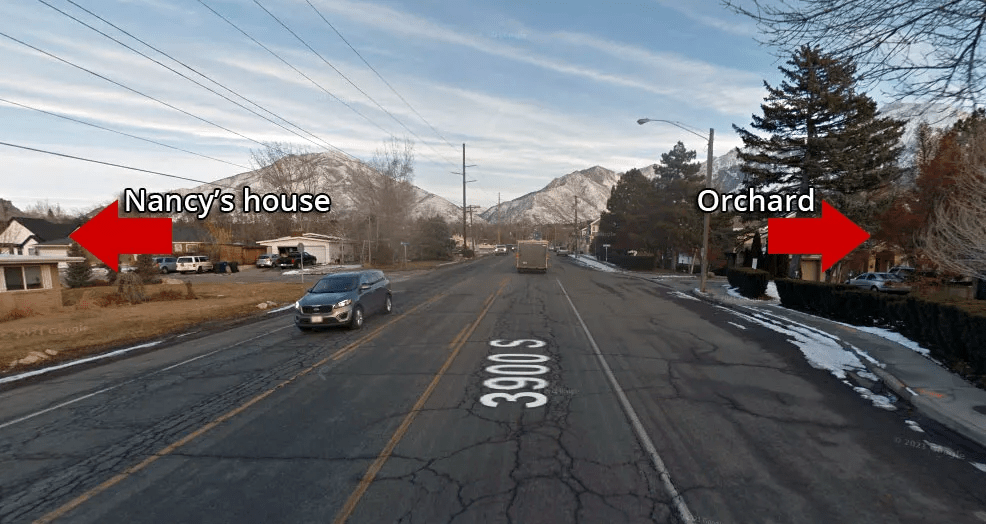 During one of Bundy’s third-person ‘pseudo-confessions’ with Stephen Michaud, he suggested that ‘the killer’ parked his car further down the road then ran up behind Nancy and forced her to go into the orchard. He elaborated that they right then and there that he planned on raping her but didn’t intend on killing her. In his mind, avoiding murder might help bring less attention to the crime; obviously, this plan didn’t work when she began to struggle against him. At that point he started to get paranoid that someone nearby might hear Nancy’s cries of distress and decide to investigate so out of pure fear he wrapped his hands around her throat and strangled her until she passed out (or so he thought). Once she was unconscious, he then took off her clothes and sexually assaulted her. After he was finished he realized that she had stopped moving, which panicked him so much that he dragged her body into a corner and then left. However, once ‘the killer’ had returned to his apartment he began to worry that he had left behind physical evidence so he decided to return to the orchard and see if her remains were still there.
