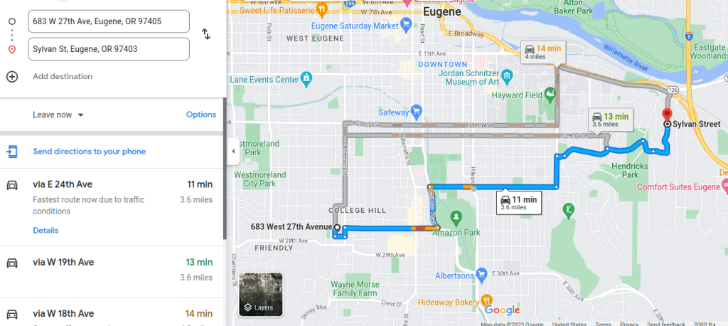 An interesting factoid I figured out from mapping out lots of potential routes along Washington/Oregon/Utah/Idaho is that Vickie Hollar and Rita Jolly were both last seen in close vicinity of major roadways. Bundy loved to drive around late at night, just roaming the Pacific Northwest looking for prey… that makes me think that if Ted was going to destinations south of Seattle he would just hop on the I-5 (which goes right through Eugene), or possibly go down I-205 in the Portland area. The city of Eugene has four colleges in it (New Hope Christian College, Bushnell U, University of Oregon, and Lane CC) and is home to the school Roberta Parks attended (University of Oregon). It’s well known that Bundy loved to prowl areas around college campus’s, and where better to go than a medium-sized college town with four schools?