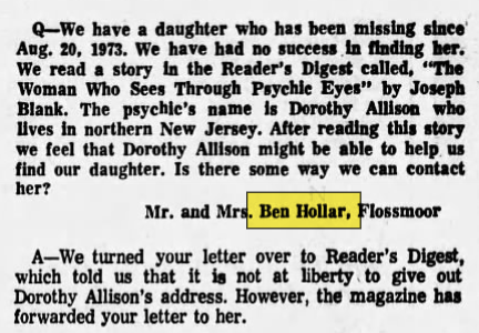 What happened to Vicki in the 1.7 miles from where her car was parked to her apartment? Did she pick up a hitchhiker who took her hostage and killed her? Did she decide to leave it all behind and start a new life somewhere? As of February 2023, Vicki Hollar is still classified as missing. She would be 73 years old. Benny Hollar passed away in December 1991 and as of September 2023 Aida Hollar is still alive.
