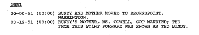 The ‘Ted Bundy Multiagency Investigative Team Report 1992’ for 1951 when Louise moved ‘little Teddy’ to Washington state.