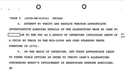 Page five of a document regarding Janla Carr/Ted Bundy from vault.fbi.gov.