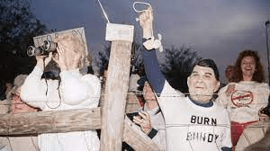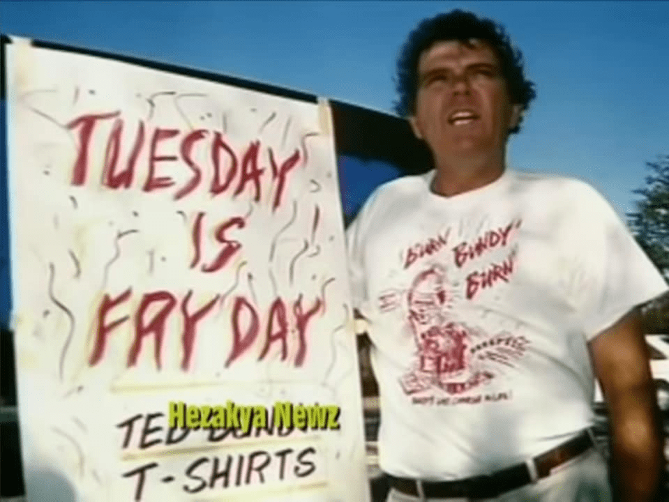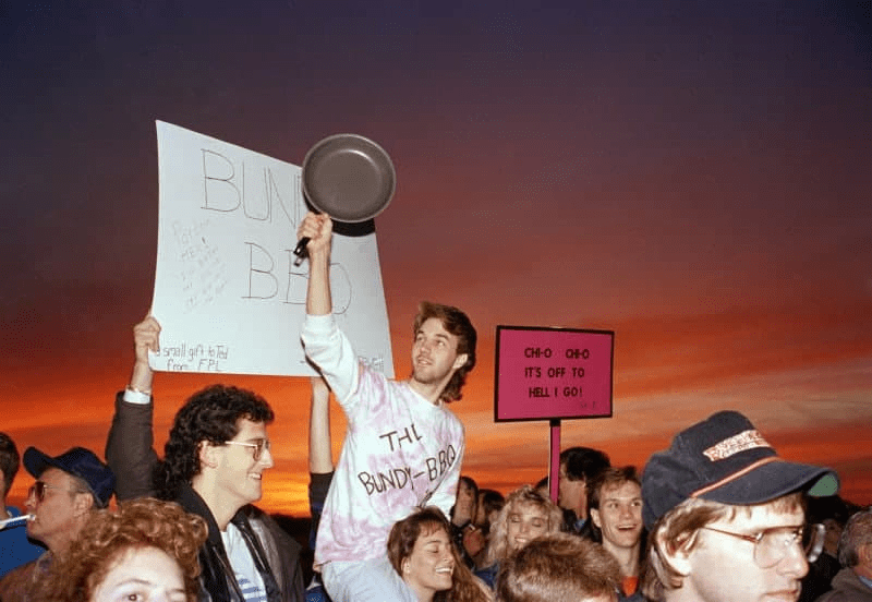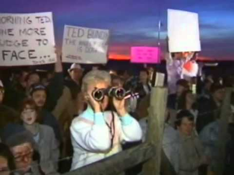 Theodore Robert Bundy was executed in Florida’s Prison’s electric chair on January 24, 1989 after brutally raping and killing dozens of young women between 1974 and 1978 (most likely earlier than that). The infamous serial killer was sentenced to capital punishment after brutally killing three young women in Florida (and countless others across the Pacific Northwest) and had been given the death penalty three times before he was finally killed. Bundy sat on death row for almost a decade when he was finally executed at 7:16 AM EST, and the event became a celebration of sorts for Floridians. On January 23, as the condemned man was spilling his guts in a last ditch effort to push off his execution, a crowd of almost 500 gathered outside the Florida Prison chanting phrases such as ‘die, Bundy, die’ and ‘burn Bundy, burn,’ drinking drank beer and holding signs that read ‘watch Ted fry, see Ted die!’ But not everyone was excited, there was also a small group of anti-death penalty protesters that didn’t want to see the event take place.