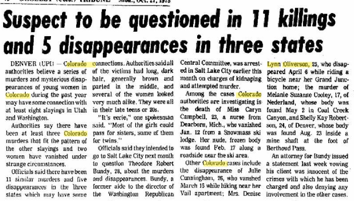 In the early stages of Denise’s disappearance the Grand Junction PD considered Romero a suspect due to his strange and suspicious manner, but nothing conclusive tied him to her disappearance and he was never charged. Law enforcement deemed that he was an unbalanced person but gave him the benefit of the doubt and said that maybe he acted that way because of his girlfriends disappearance. Unfortunately for Oliversons family they were forced to sit back and watch as her case grew cold, and there don’t seem to be any reports of any tips or leads until Bundy confessed on death row in 1989.