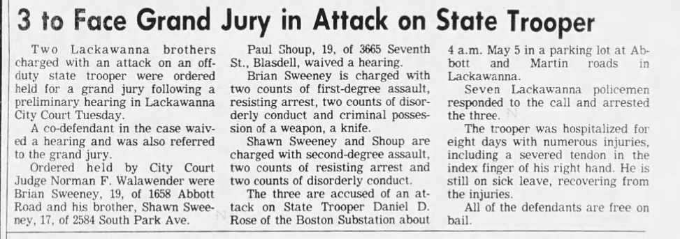 An article mentioning Rose from his days as a NYS Trooper published by The Buffalo News on April 12, 1984.