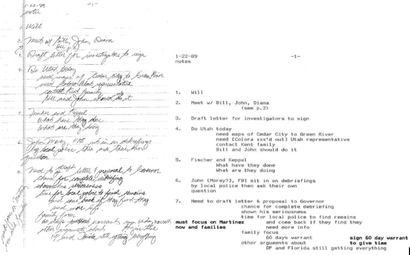 Page one of Bundy’s notes from January 22, 1989. Document courtesy of Maria Serban.
