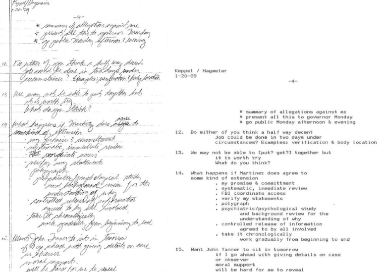 Page four of Bundy’s notes from January 20, 1989. Document courtesy of Maria Serban.