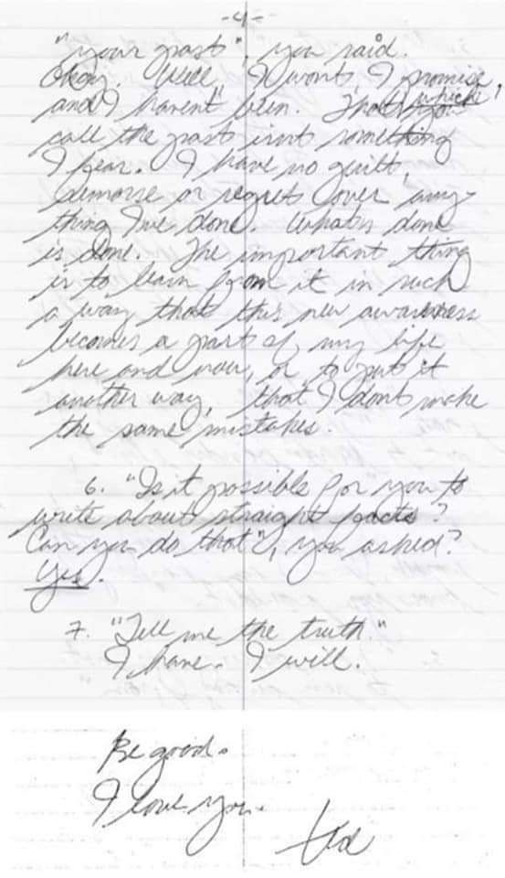 Part one of the transcription of Bundy’s letter to Edna written on August 1, 1986.