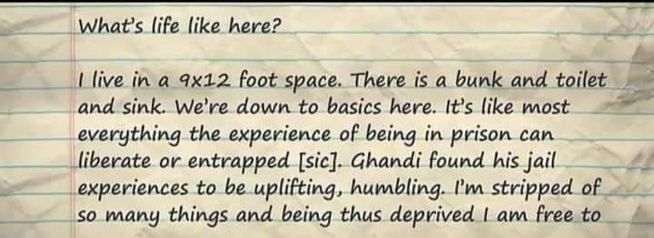 An excerpt from Bundy’s November 13, 1986 letter to Edna, where her tried to offer her some insight on his daily routine while on death row in Florida.