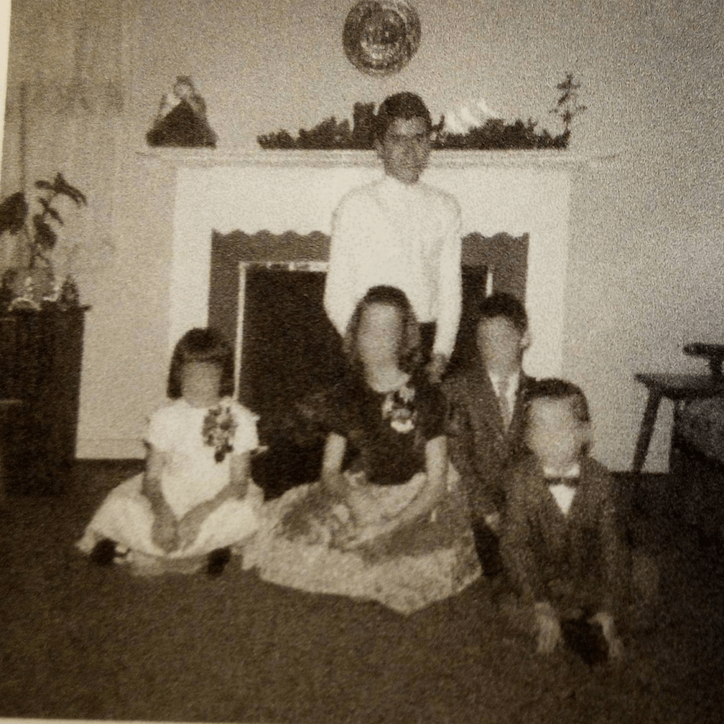 A picture of the Bundy family around Christmas time, Ted is holding baby Richie.