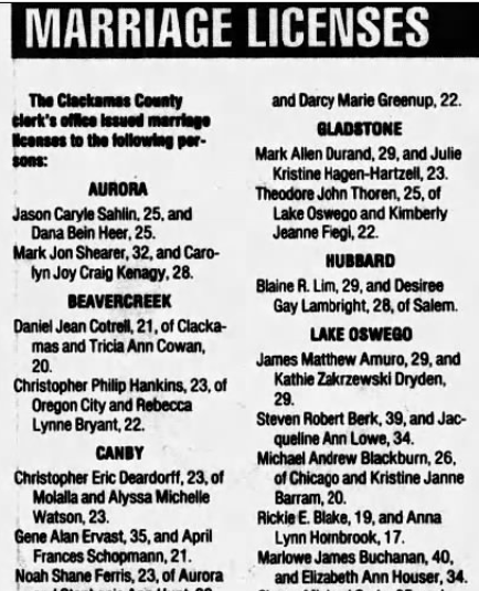 As of December 2024 Marlowe James Buchanan still lives in his hometown of West Oswego, Oregon with his wife, Elizabeth Ann (nee Houser). The couple were married on July 22, 1995 in Washington, OR and have no children. I wasn’t able to find much information about him, but I wasn’t able to find any additional criminal activity linked to him, so he seems to have flown under the radar since being released from prison. He may have gone on to finish his education after he got out of prison, as I found his name linked to some patents that were filed while he was employed at Eaton Intelligent Power Limited. As I found myself digging and digging but still coming up with nothing I suddenly realized that Mr. Buchanan most likely does not want to be found, and I’m going to let him be.