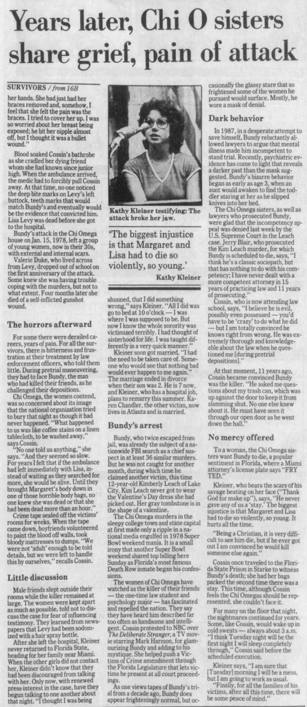 On the first anniversary of the murders Valerie Duke dropped out of school, which according to her mother was ‘completely out of character for Valerie. She had broken up with her boyfriend and couldn’t seem to decide whether to stay in Tallahassee or come here.’ Her sorority sisters also said that she was having an incredibly difficult time processing the murders, and to make matters worse, according to her parents Bundy’s fingerprints were found in her room (even though I came across a shred of evidence that confirmed that).