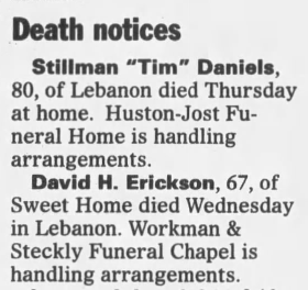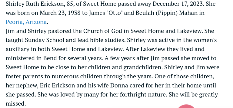 Chappell, Sky. ‘Virginia Erickson, The Forgotten Sweet Home Woman.’ (October 25, 2023). Taken January 26, 2025 from sweethomenews.com/virginia-erickson-the-forgotten-sweet-home-woman/