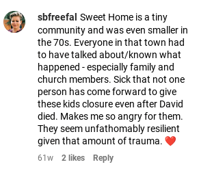 Rachel said that her mothers disappearance split the family generationally, and most of her extended family told her to leave it in the past and to let it go. These are the same people that called David a ‘good Christian man’ that could do no wrong despite the fact that he was convicted of raping his three young daughters. She also said there are two detectives from the Linn County Sheriff’s Department that are currently working on the case, Caleb Riley and Randy Voight.