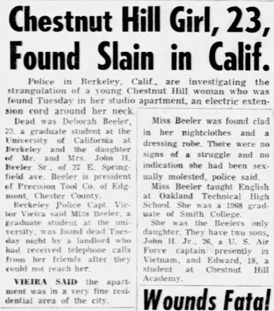 An article about Beeler’s murder published in The Philadelphia Daily News on February 26, 1970.