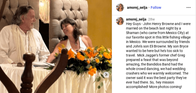 A screen shot of an Instagram post from John Henry Browne’s wife about their wedding.