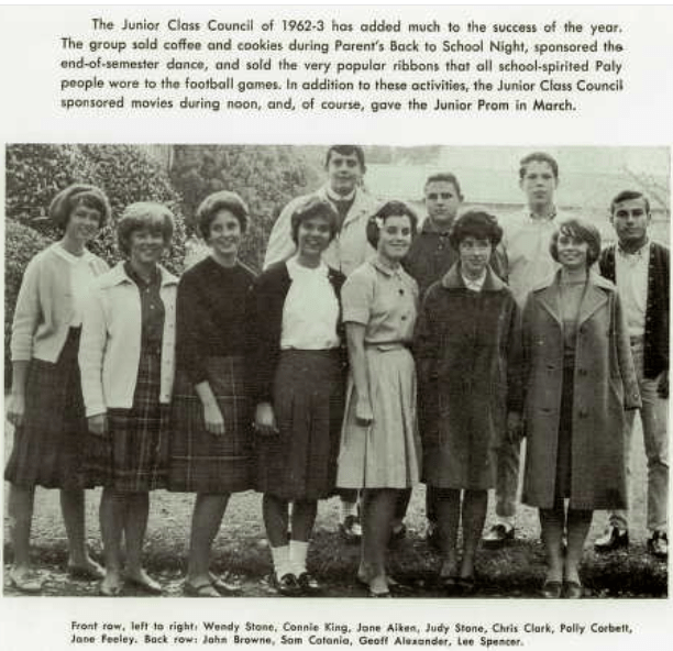 John Henry Browne in a group picture for the Junior Class Council of 1962-1963 from the 1963 the Palo Alto High School