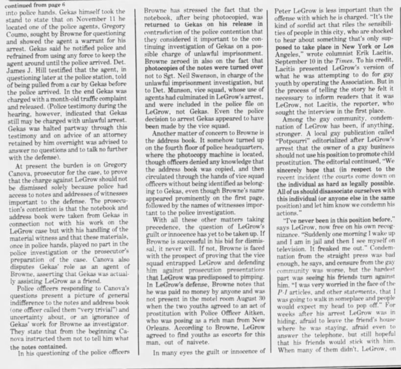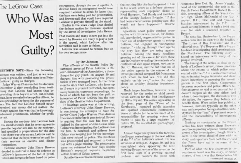 Part two of a newspaper article about the outcome of the Peter LeGrow case published in The Seattle Gay News on December 1, 1977.