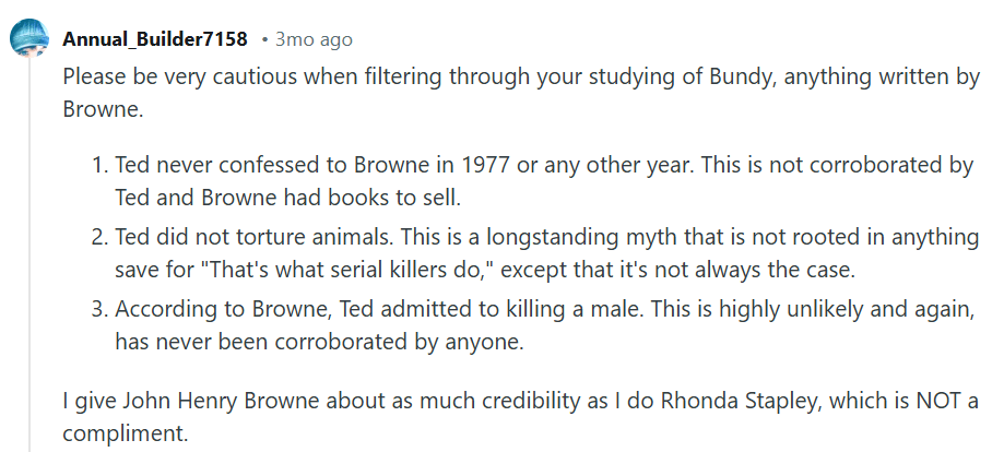 A second Redditor chiming in offering their opinion on John Henry Browne.