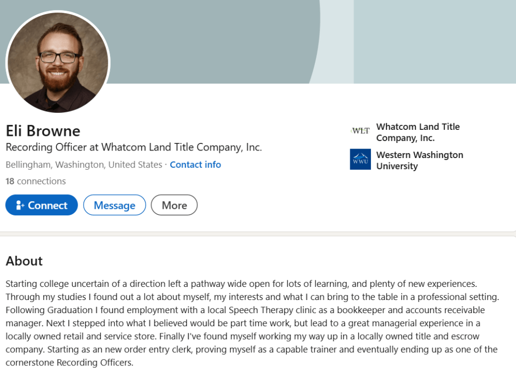 Eli Browne’s ‘about me’ section taken from his LinkedIn Page.