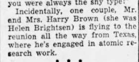 A newspaper article Harry and Helen Browne’s high school reunion that mentions them by name that was published in The Staten Island Advance on June 12, 1952.