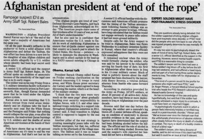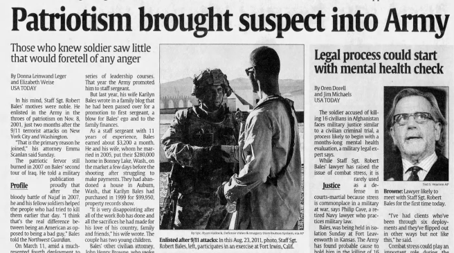 An article about Sergeant Robert Bales that mentions John Henry Browne published in USA Today on March 19, 2012.