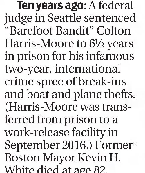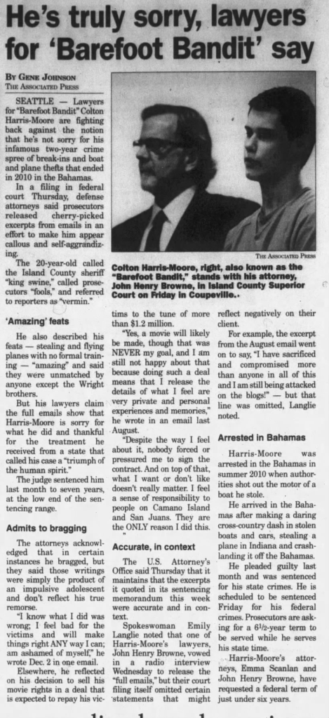 An article about Colton Harris-Moore that was published in The Peninsula Daily News on January 27, 2012.