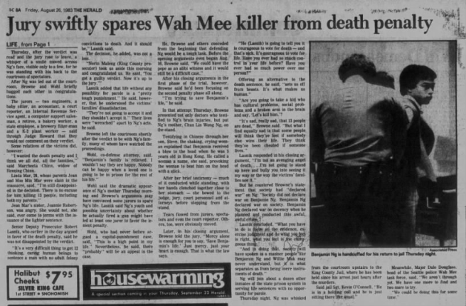 Part two of an article about Benjamin Ng’s life being spared from the death penalty that was published in The Daily Herald on August 26, 1983.