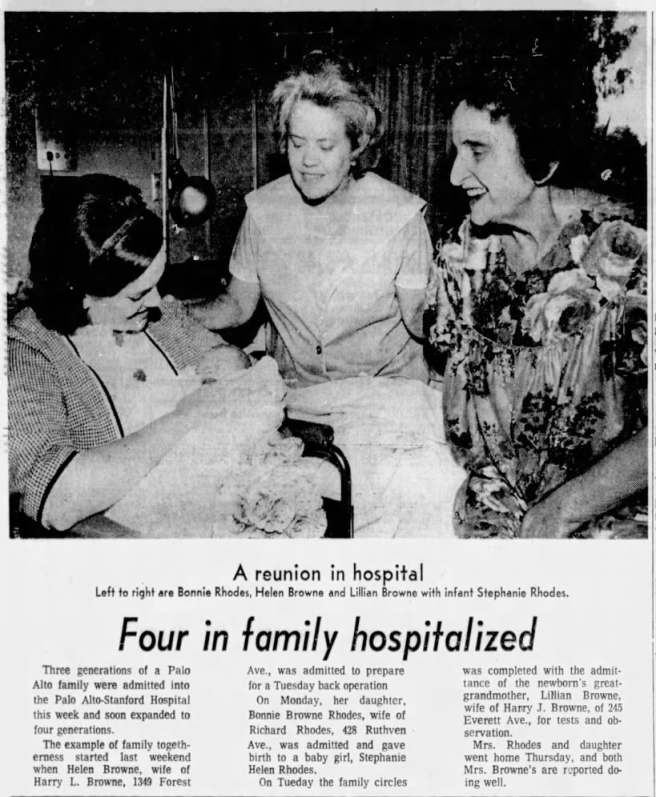 A newspaper clipping that mentions Johns sister, mother, and grandmother all being hospitalized at the same time that was published in The Peninsula Times Tribune on August 26, 1966.