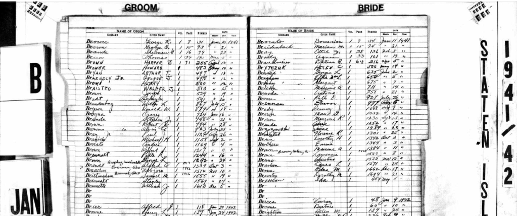 John and Helen listed in the Staten Island Marriage Index in 1941/42.