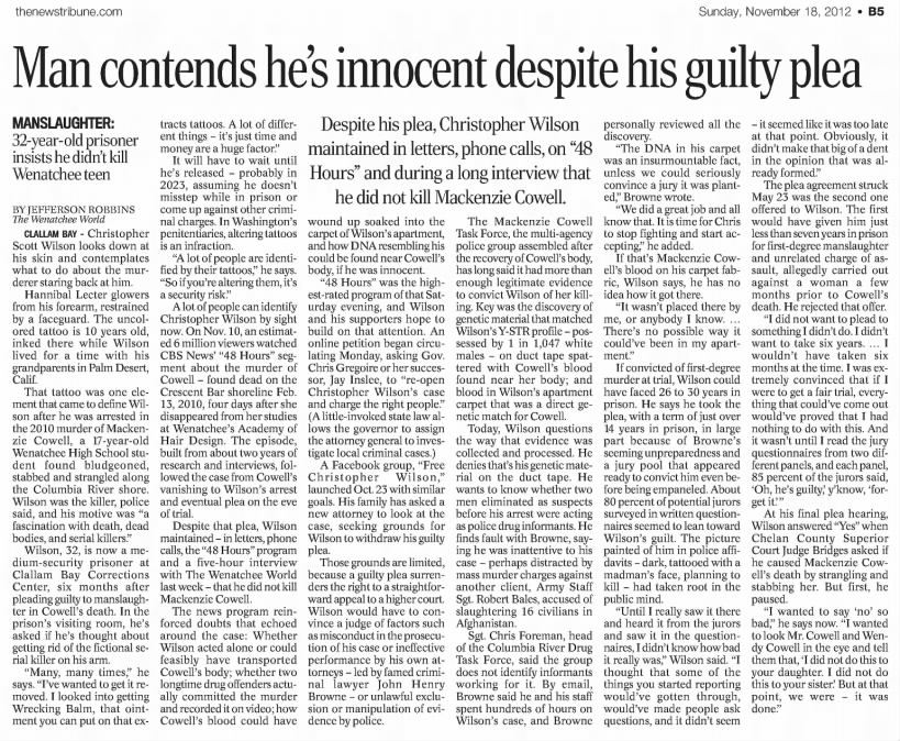 An article about the murder of Mackenzie Cowell that mentions John Henry Browne that was published in The News Tribune on November 18, 2012.