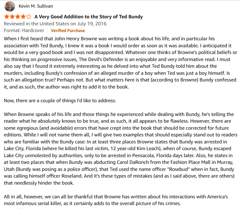 Bundy researcher Kevin Sullivan’s review of John Henry Browne’s 2016 book.