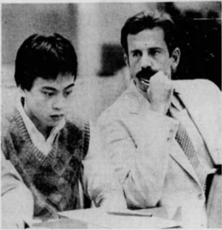 A picture of John Henry Browne with his client Benjamin Ng that was published in The Tri-City Herald on August 13, 1983.