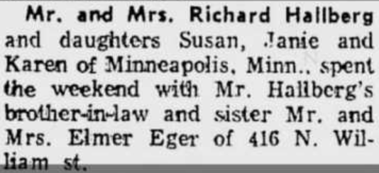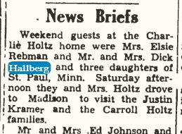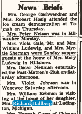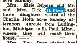 Richard Hallberg and his family was mentioned in an blurb that was published in The Elroy Leader Tribune on April 23, 1948.