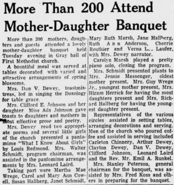 An article mentioning Pauline Hallberg that was published on May 20, 1953 in Ludington Michigan.