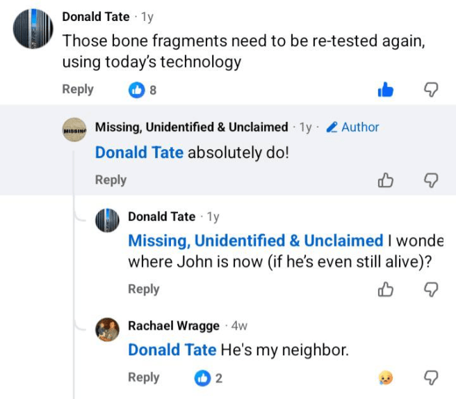 Some comments made about John Wakefield in a Facebook post about Jane.