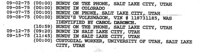 Bundy’s whereabouts according to the 1992 FBI TB Multiagency Team Report.