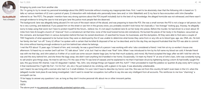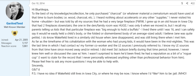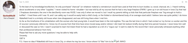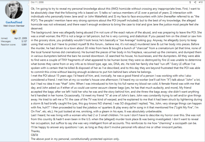 A second comment on a Websleuth’s post about Jane Ellen Wakefield made by user ‘GarAndTeed.’
