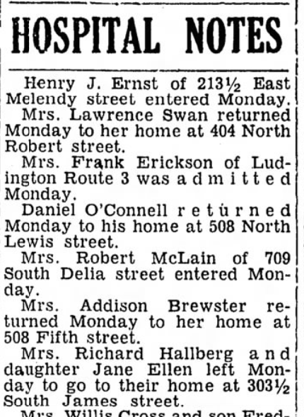 Richard and Jane are mentioned in some hospital notes from The Ludington Daily News on November 23, 1948.