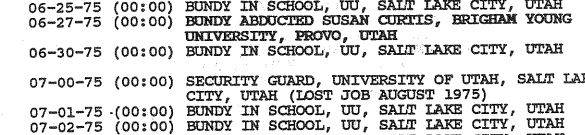 Apparently the Curtis family was so desperate for answers as to what happened to Sue that they hired multiple psychics, but sadly nothing ever came of it. At the time of her abduction Bundy was a law student at the University of Utah and was living at565 1st Avenue North in SLC. Per my ‘handy dandy TB job chart,’ in June and July 1975 he was employed as the night manager in charge of Bailiff Hall at the University (but was terminated after showing up for work drunk). He was still with Liz Kloepfer, although things were getting ready to fizzle out for the final time (they officially broke up after Ted went to prison for the attempted kidnapping of Carol DaRonch in 1976). Also according to Kloepfer he started growing a beard in June 1975, so there’s a good chance he had one when he abducted Curtis.