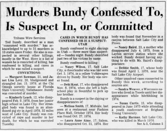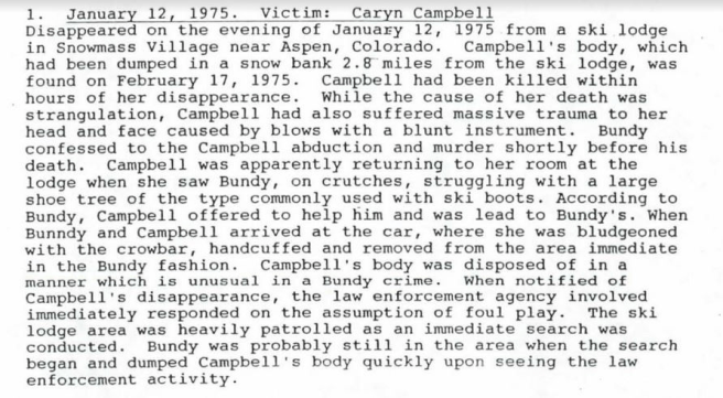 I’ve been spending a good chunk of my time writing about the unconfirmed victims so in this installment of ‘All Things Bundy,’ I’m going over his confirmed kills.