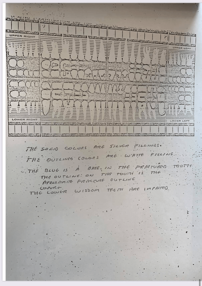 After Caryn disappeared, Dr. Gadowski stayed behind at The Wildwood Inn for a week with hopes that she would somehow return to him, but sadly that never happened and he returned home to Michigan. After weeks of combing the general Aspen area investigators determined that there was no evidence pointing towards Campbell having met with foul play, and called off their search. Almost immediately after her disappearance Investigator Fisher reached out to Campbells dentist and got a copy of her dental records and x-rays, a Dr. Richard H. Mentzer of Dearborn, MI.