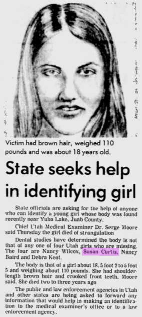 Susan Curtis (15). June 27, 1975. Murdered, Provo, UT.