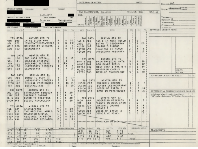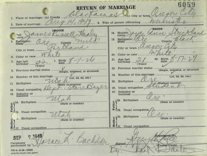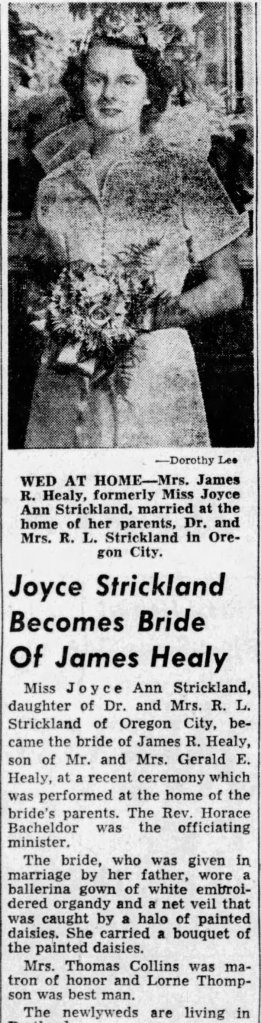 Jim Healy passed away at the age of 72 on June 22, 1998 in Bellevue WA, and Joyce Ann Healy died from complications of COVID at the age of ninety-three on December 27, 2020 in Redmond, WA. According to her obituary, Joyce loved the beach, and the family would often vacation in Ocean Shores, WA where they spent their time beachcombing, riding dune buggies, and roasting hotdogs. After her children flew the nest she went back to school and got a BS in Computer Science from Bellevue College; she learned Cobol (or Common Business Oriented Language) and Fortran (Formula Translation) and went on to have an incredibly successful second career as a computer programmer.