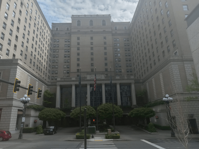 The Fairmont Olympic Hotel, picture taken in April 2022.