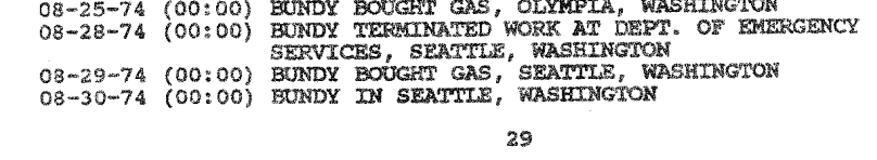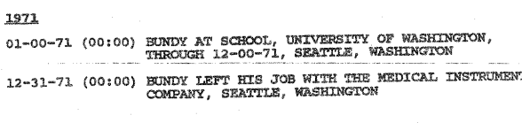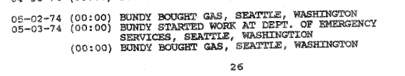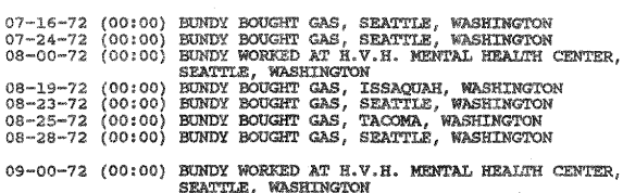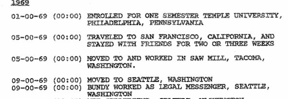 According to the ‘1992 TB FBI Multiagency Team Report,’ from May 3, 1974 to August 28, 1974 Ted was employed at the Department of Emergency Services in Olympia.